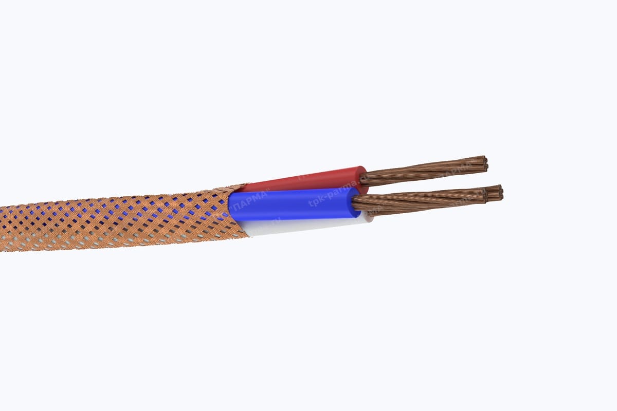 1. Две многопроволочные медные токопроводящие жилы с площадью номинального поперечного сечения 0,75 мм2, соответствующие 3 классу по ГОСТ 22483-2012.